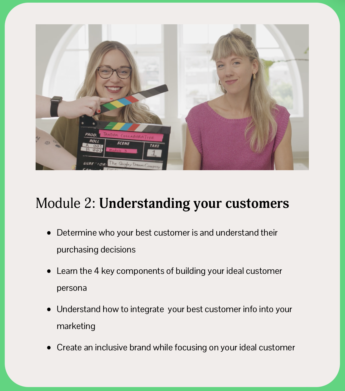 Amelia and Larissa started Tandem Collaborative in 2020 and have worked with over 50 small businesses and solo entrepreneurs one-on-one, run customized workshops on marketing and brand for over 200 people, and are so excited to share this new offer with entrepreneurs.